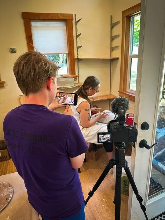 Liv recording using an iPhone camera next to a tripod.